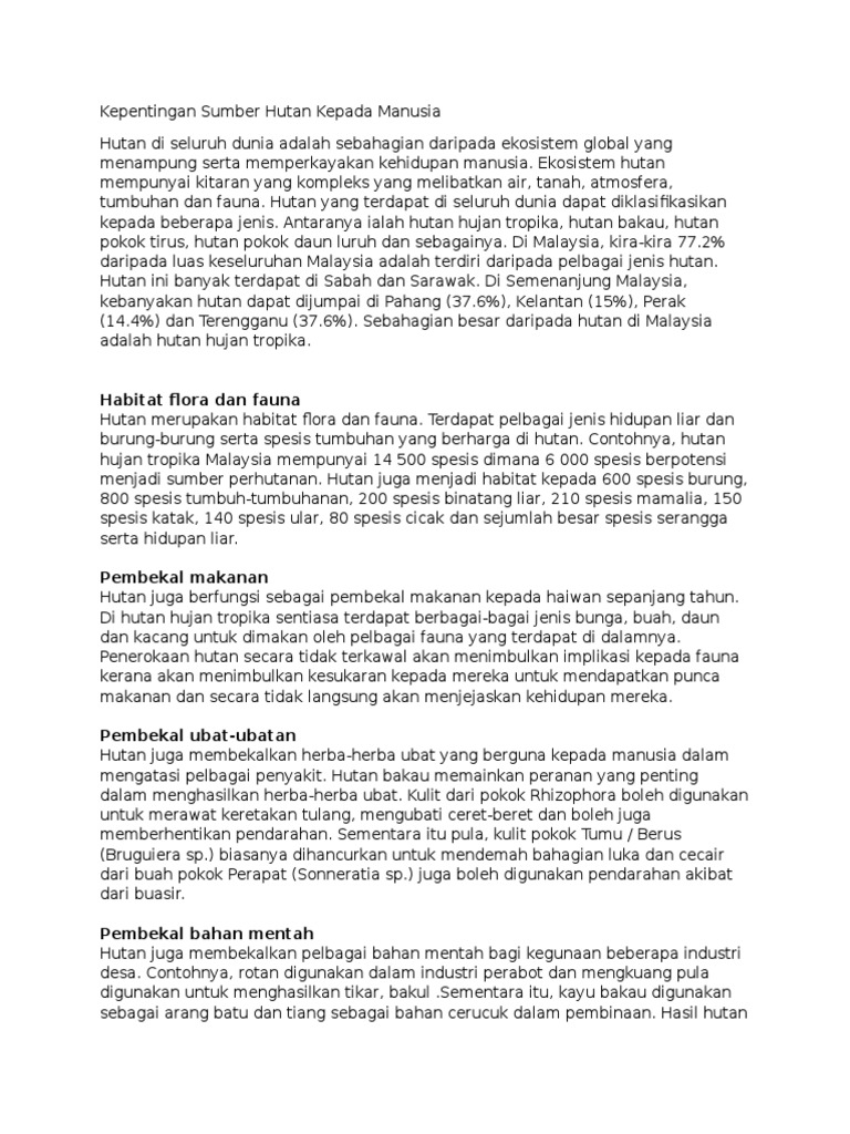 Kepentingan Sumber Hutan Kepada Manusia Pdf